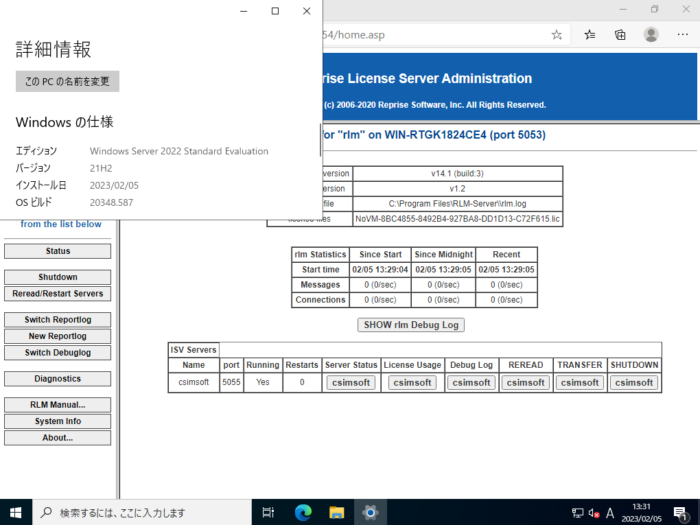 ここでは、Windows Server 2022で、RLM-Server-2021.4が動作するか試しました。